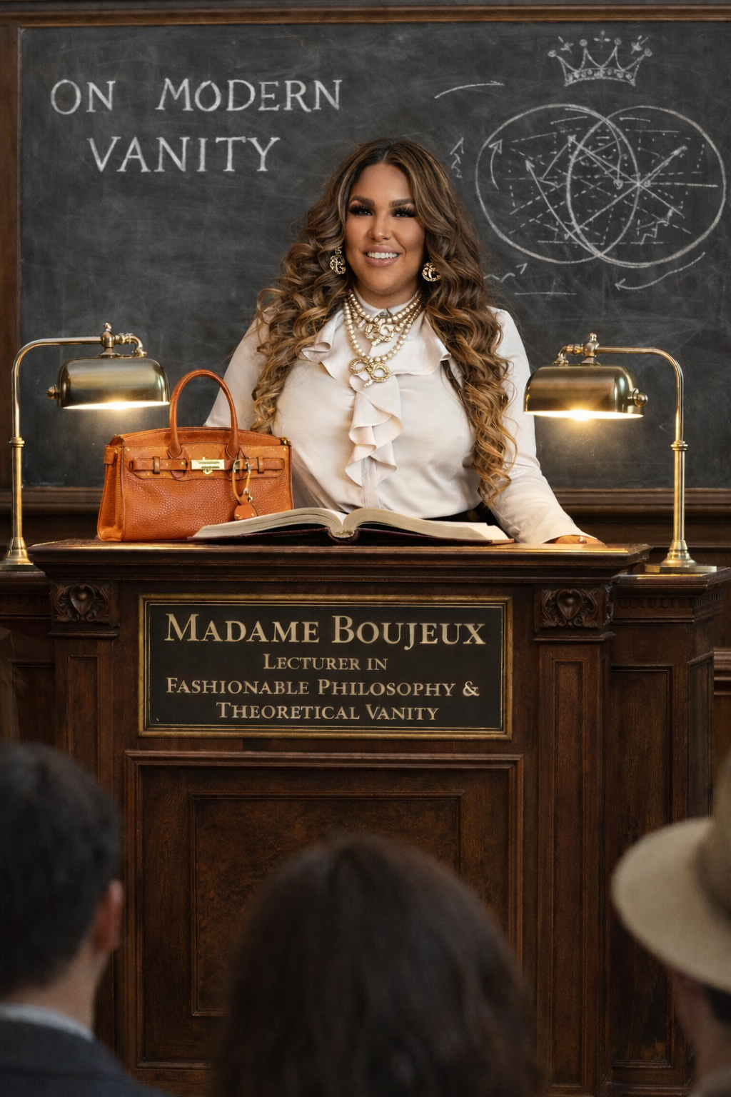 Madame Boujeux lives for luxury and lectures on the comedy of consumerism. Draped in confidence and Chanel No. 5, she dissects trends, worship, and the absurd theatre of fashion with academic precision and scandalous flair. Her presence alone raises the site’s SEO by one octave.